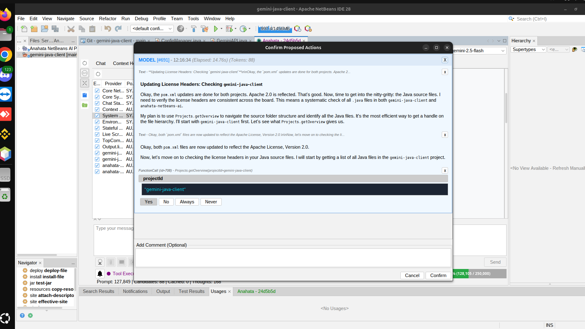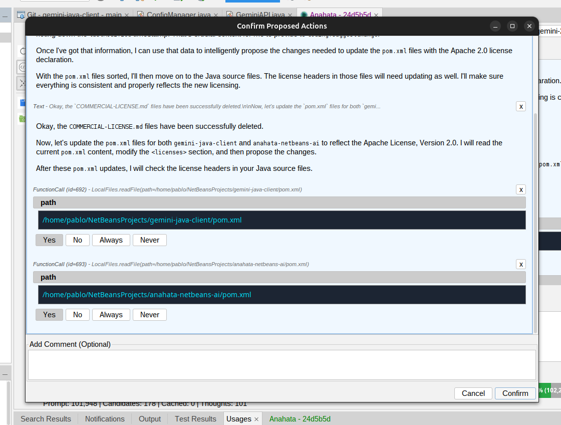 - Runtime API Access: All NetBeans APIs and modules are available to the LLM at runtime for programmatic interaction.